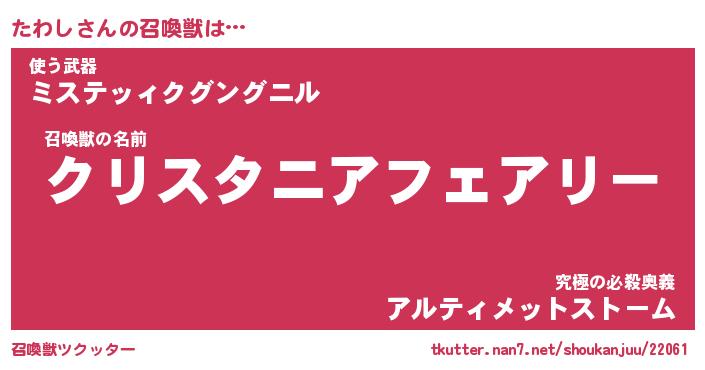 | ファンタジー風あだ名 | 『タワフェル』『エターナルタワシー』 |