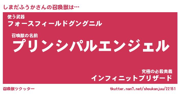 | 肩書あだ名 | 『しまだふうか店長』『しまだふうか団長』 |