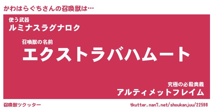 | 女子向けラノベタイトル風あだ名 | 『(仮)かわはらぐちのやんごとなき事情』 |