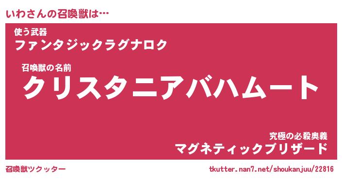 | ファンタジー風あだ名 | 『イワフェル』『エターナルイワー』 |