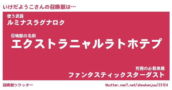 | ヒーロー風カッコイイあだ名 | 『スーパーイケダヨウコ』『炎刃騎士イケ』 |