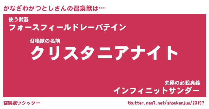 | 女子向けラノベタイトル風あだ名 | 『誰かこのかなざわかつとしを説明してください! ~契約から始まるウェディング~』 |