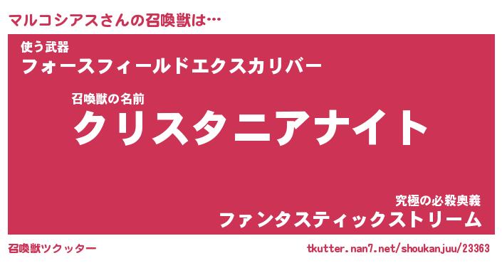 | 男性向けラノベタイトル風あだ名 | 『マルコシアスアートオンライン』 |