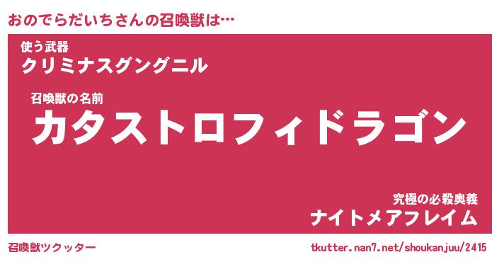 | 伝説のあだ名 | 『封印されし竜騎士おのでらだいち』 |