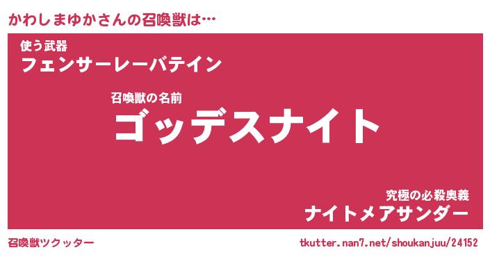| 伝説のあだ名 | 『不死鳥の傭兵かわしまゆか』 |