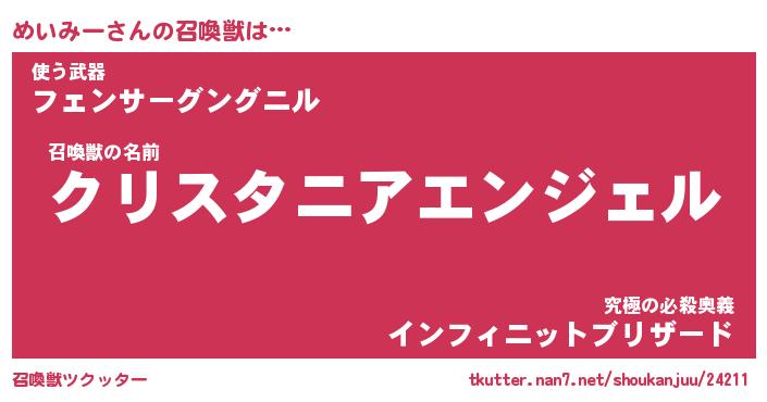 | ファンタジー風あだ名 | 『メイフェル』『エターナルメイミーー』 |