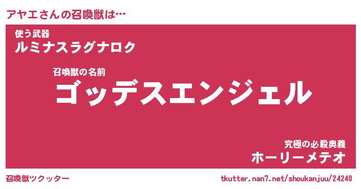 | ファンタジー風あだ名 | 『アヤフェル』『エターナルアヤエー』 |