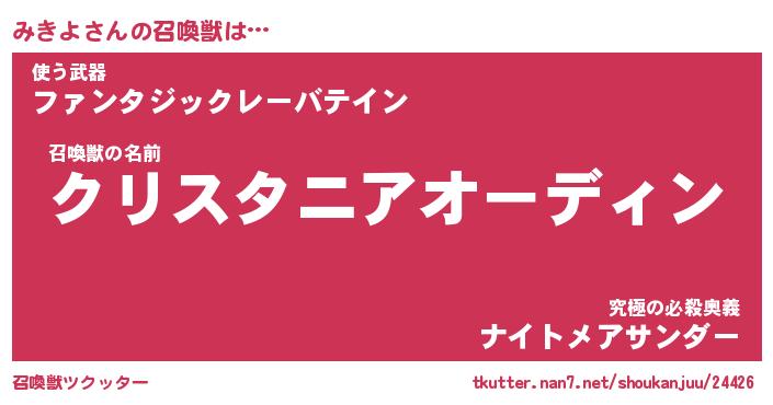 | ファンタジー風あだ名 | 『ミキフェル』『エターナルミキヨー』 |