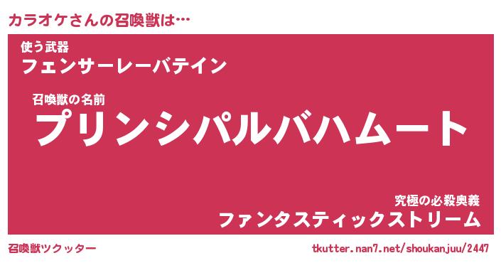 | ファンタジー風あだ名 | 『カラフェル』『エターナルカラオケー』 |