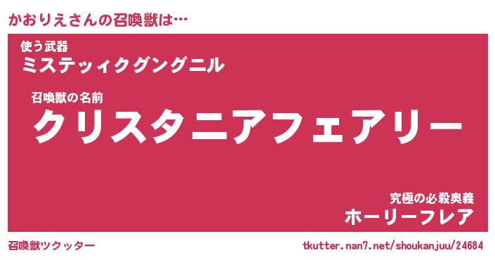 | ファンタジー風あだ名 | 『カオフェル』『エターナルカオリエー』 |