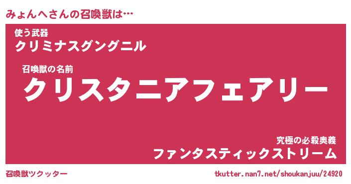 | ファンタジー風あだ名 | 『ミョフェル』『エターナルミョンヘー』 |