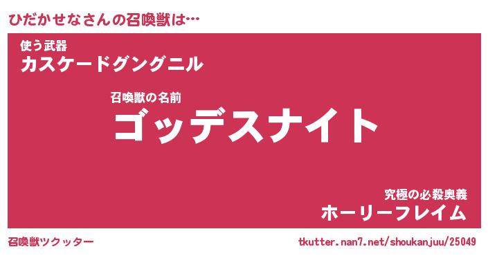 | ヒーロー風カッコイイあだ名 | 『スーパーヒダカセナ』『幻影騎士ヒダ』 |