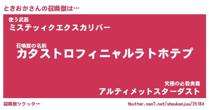 | ファンタジー風あだ名 | 『トキフェル』『エターナルトキオカー』 |