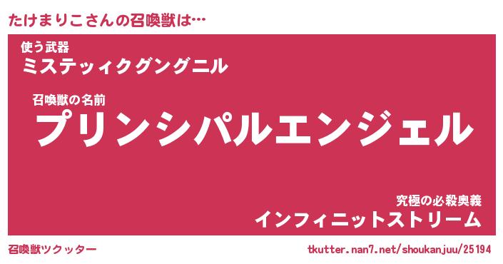 | ファンタジー風あだ名 | 『タケフェル』『エターナルタケマリコー』 |