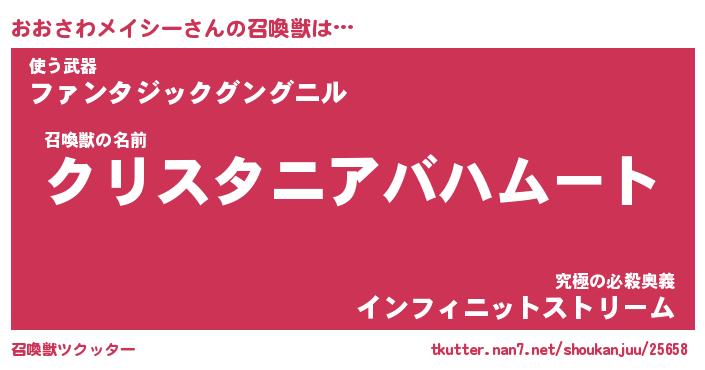 | 伝説のあだ名 | 『封印されし竜騎士おおさわメイシー』 |