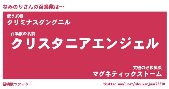 | ツイッター | なみのりさんのツイッターID『namakemono_idle』 |
