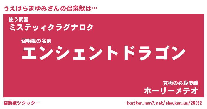 | 伝説のあだ名 | 『伝説の竜騎士うえはらまゆみ』 |