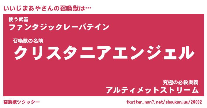 | ヒーロー風カッコイイあだ名 | 『スーパーイイジマアヤ』『幻影騎士イイ』 |