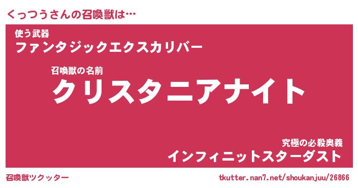 | ヒーロー風カッコイイあだ名 | 『スーパークッツウ』『天弓騎士クッ』 |