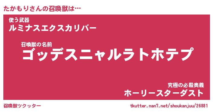 | 女子向けラノベタイトル風あだ名 | 『たかもり姫と円卓の騎士』 |