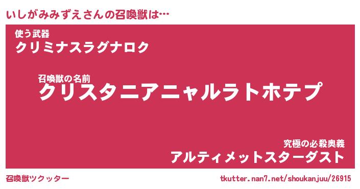 | ヒーロー風カッコイイあだ名 | 『スーパーイシガミミズエ』 |