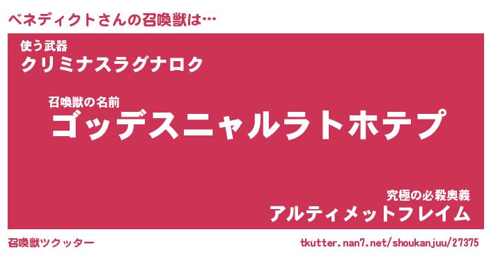 | ファンタジー風あだ名 | 『ベネフェル』『ファントムベネス』 |