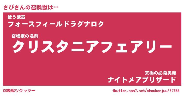 | ファンタジー風あだ名 | 『サビフェル』『エターナルサビー』 |