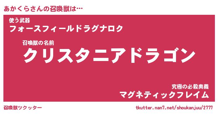 | 伝説のあだ名 | 『封印されし竜騎士あかくら』 |