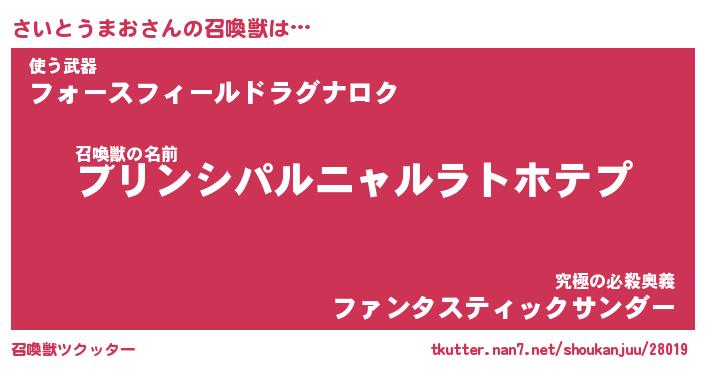 | 男性向けラノベタイトル風あだ名 | 『さいとうまおの憂鬱』 |