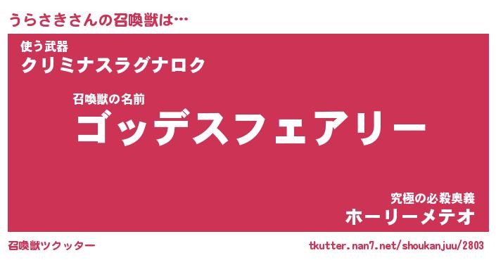 | 女子向けラノベタイトル風あだ名 | 『うらさき姫と円卓の騎士』 |