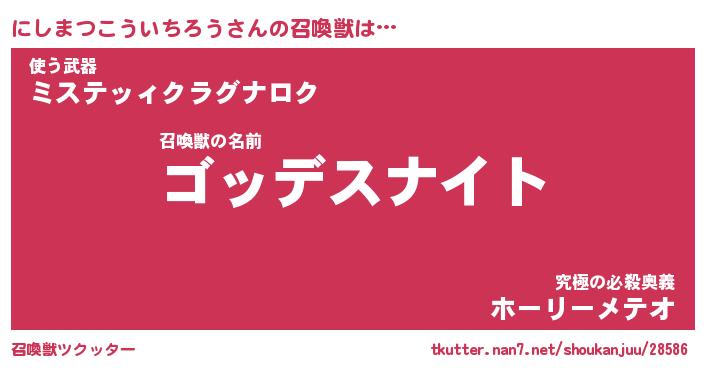 | 女子向けラノベタイトル風あだ名 | 『にしまつこういちろう姫と円卓の騎士』 |