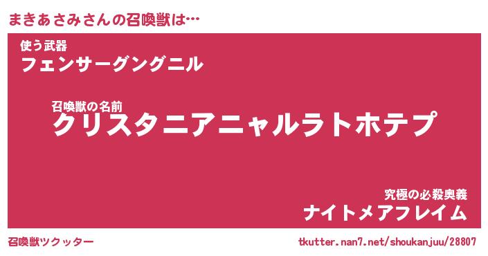 | ファンタジー風あだ名 | 『マキフェル』『エターナルマキアサミー』 |