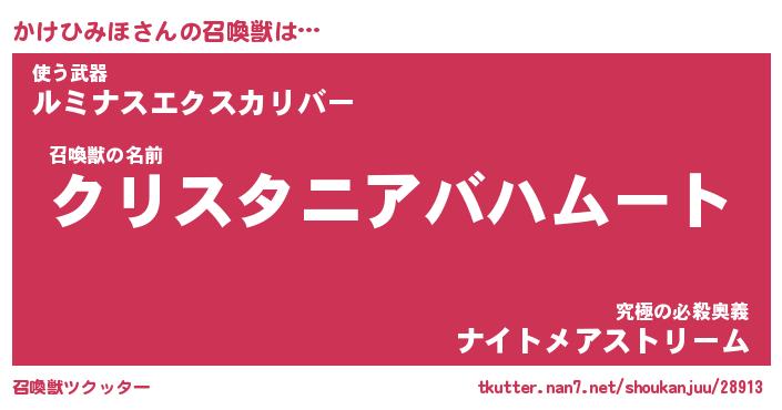 | ヒーロー風カッコイイあだ名 | 『スーパーカケヒミホ』『暗黒騎士カケ』 |