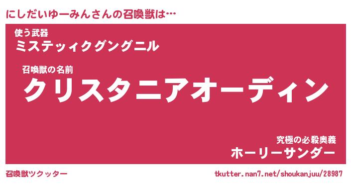 | 女子向けラノベタイトル風あだ名 | 『誰かこのにしだいゆーみんを説明してください! ~契約から始まるウェディング~』 |