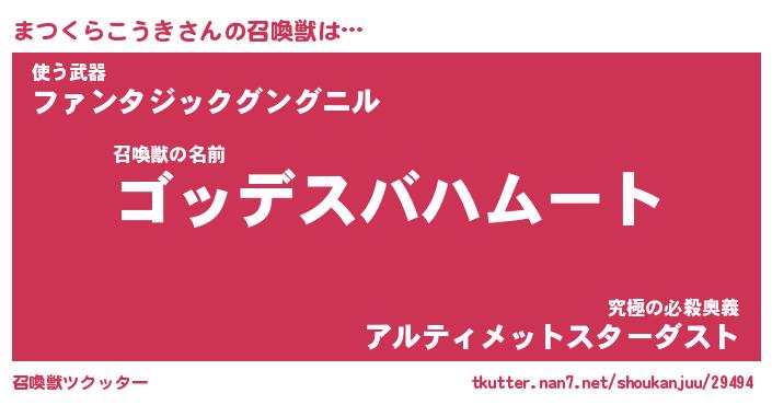| ヒーロー風カッコイイあだ名 | 『スーパーマツクラコウキ』 |