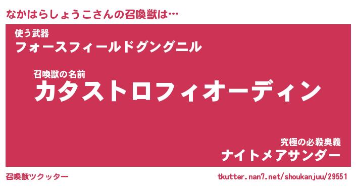 | 伝説のあだ名 | 『封印されしスナイパーなかはらしょうこ』 |