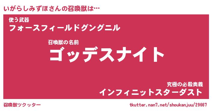 | 男性向けラノベタイトル風あだ名 | 『イガラシミズホアートオンライン』 |