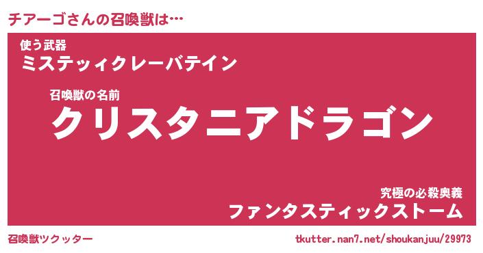 | 男性向けラノベタイトル風あだ名 | 『チアーゴアートオンライン』 |
