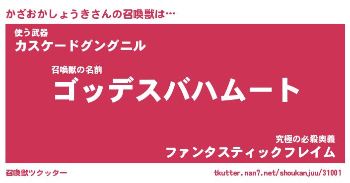 | ファンタジー風あだ名 | 『カザフェル』『ファントムカザス』 |