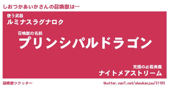| 伝説のあだ名 | 『不死鳥の竜騎士しおつかあいか』 |