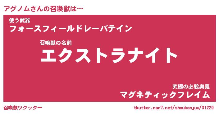 | ファンタジー風あだ名 | 『アグフェル』『エターナルアグノムー』 |