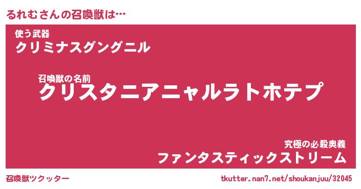 | 伝説のあだ名 | 『封印されしスナイパーるれむ』 |