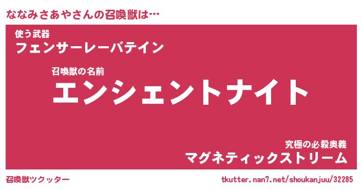 | ヒーロー風カッコイイあだ名 | 『スーパーナナミサアヤ』『幻影騎士ナナ』 |