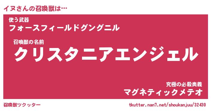 | ファンタジー風あだ名 | 『イヌフェル』『エターナルイヌー』 |