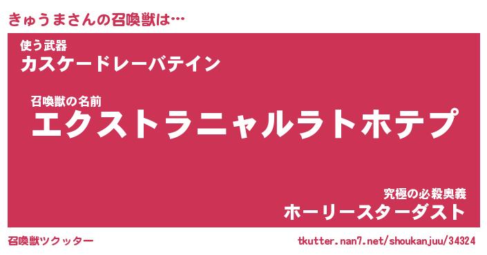 | ファンタジー風あだ名 | 『キュフェル』『エターナルキュウマー』 |