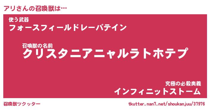 | 伝説のあだ名 | 『封印されしスナイパーアリ』 |