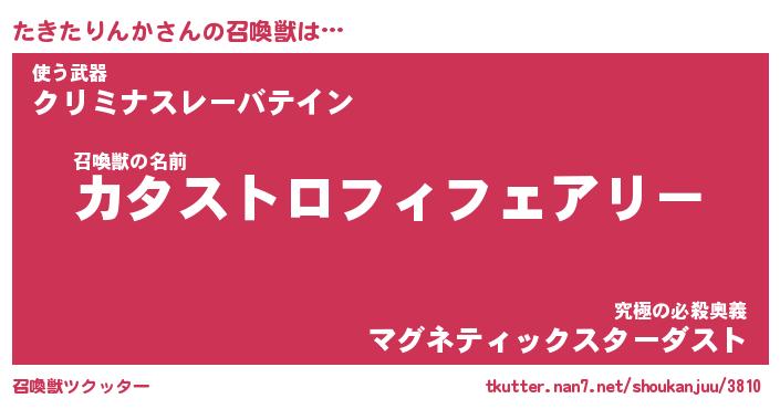 | ヒーロー風カッコイイあだ名 | 『スーパータキタリンカ』『天弓騎士タキ』 |