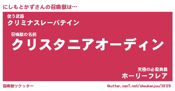 | ヒーロー風カッコイイあだ名 | 『スーパーニシモトカズ』『炎刃騎士ニシ』 |