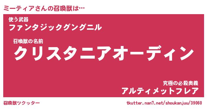 | ファンタジー風あだ名 | 『ミーフェル』『エターナルミーティアー』 |