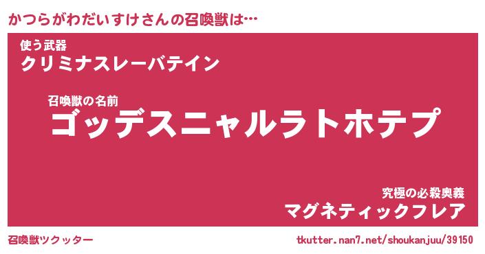 | 胡散臭い通販商品みたいなあだ名 | 『モテモテ間違いなし霊験あらたかなお札…その名も「かつらがわだいすけ」』 |